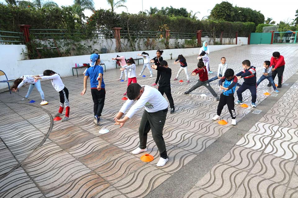 Pas de jeux de ballon, ni sport de contact, mais les enfants font tout de même leur séance de sport en plein air, dans une des cours de l’établissement. Les enseignants leur proposent des exercices pour travailler la coordination , l’équilibre et le renforcement musculaire et ce, avec des marquages au sol tout en respectant la distanciation d’au moins deux mètres . Le matériel utilisé est désinfecté après chaque utilisation